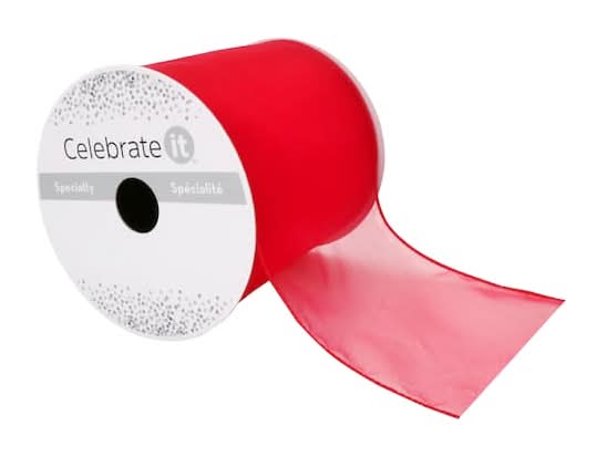 Celebrate It Sheer Wired Ribbon, 4In X 10Yd, Red