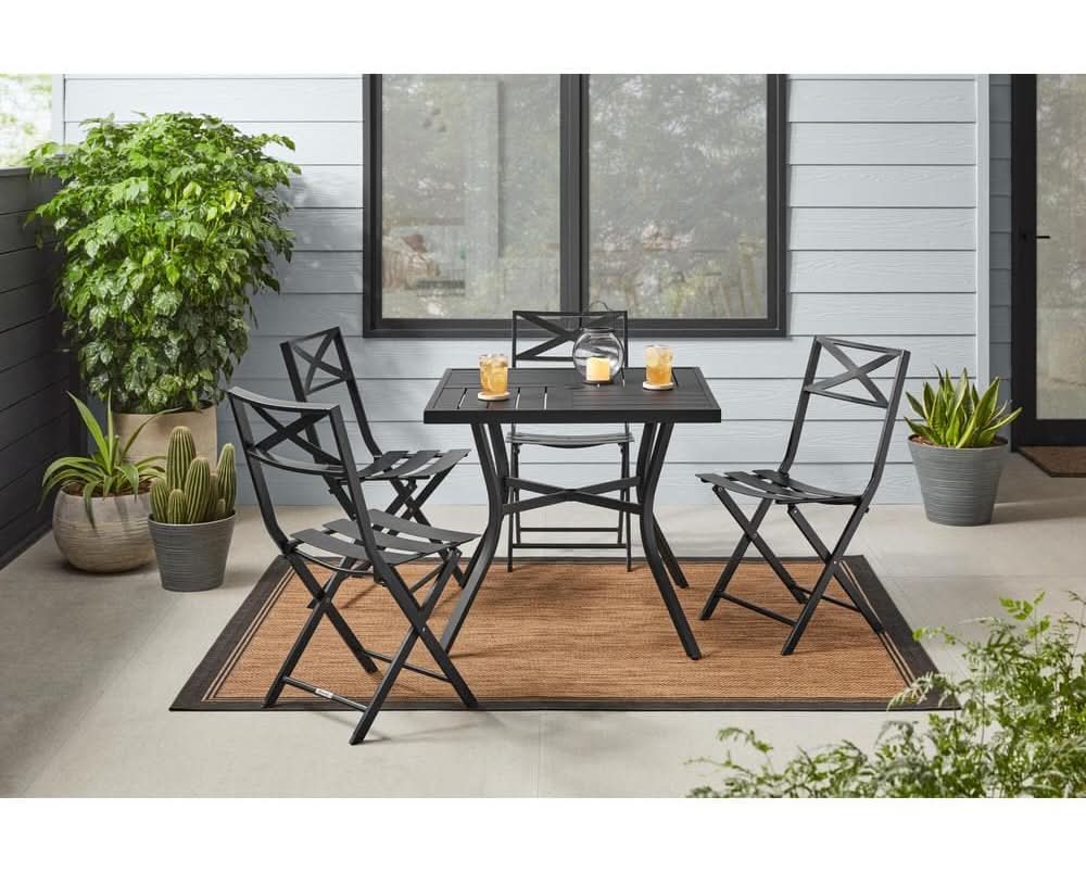 Stylewell Folding Steel Outdoor Dining Chair, Black