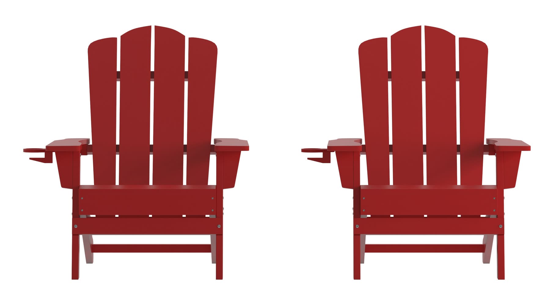 Flash Furniture Adirondack Chairs With Cup Holder, Red (2 ct)