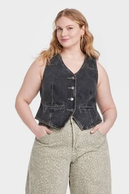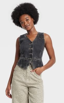 Wild Fable Denim Oversized Trucker Vest, Women, S, Black Wash