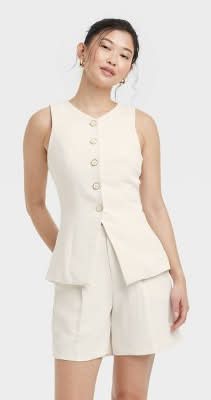 A New Day Linen Fabric Blend Vest, Women, M, White