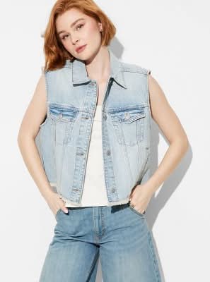 Wild Fable Denim Oversized Trucker Vest, Women, M, Black