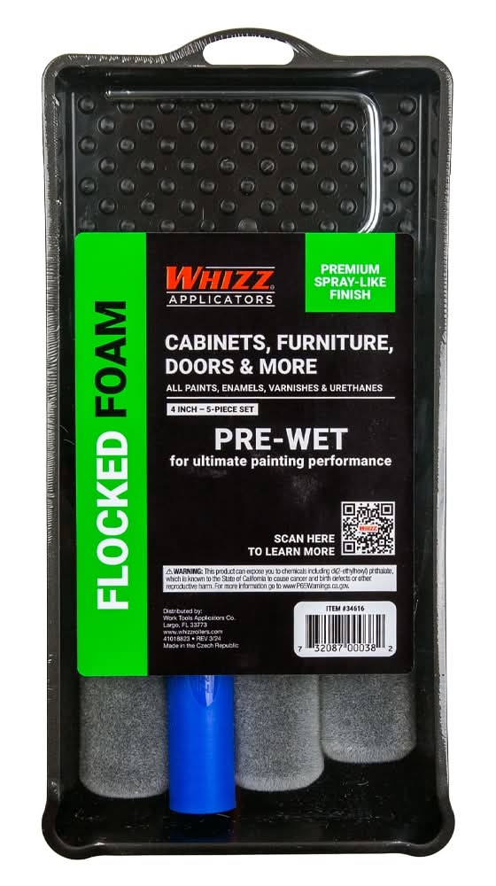 WHIZZ Cabinets Furniture Doors & More Pre Wet Flocked Foam Rollers, 4 in (5 ct)