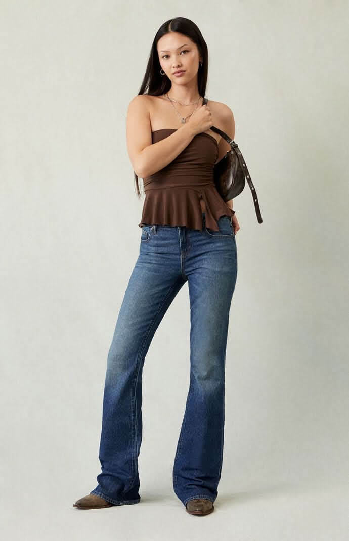 Pacsun Jade Low Rise Bootcut Dark Blue Stretch Jeans, Women, 25, Medium Indigo