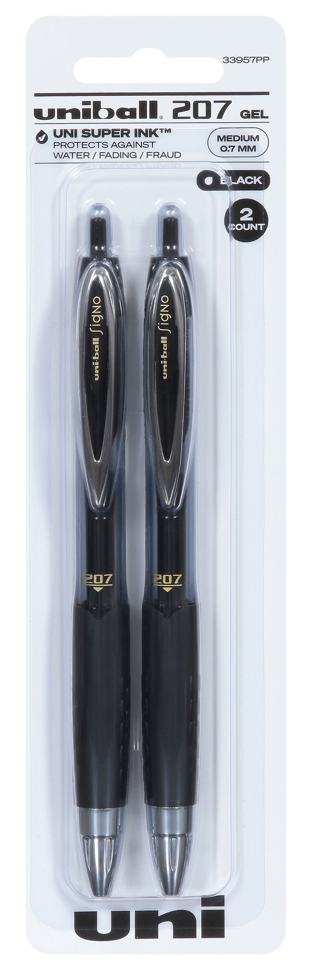 Uni-Ball Signo Medium 207 Gel Pens,, Black (1.6 oz, 2 ct)