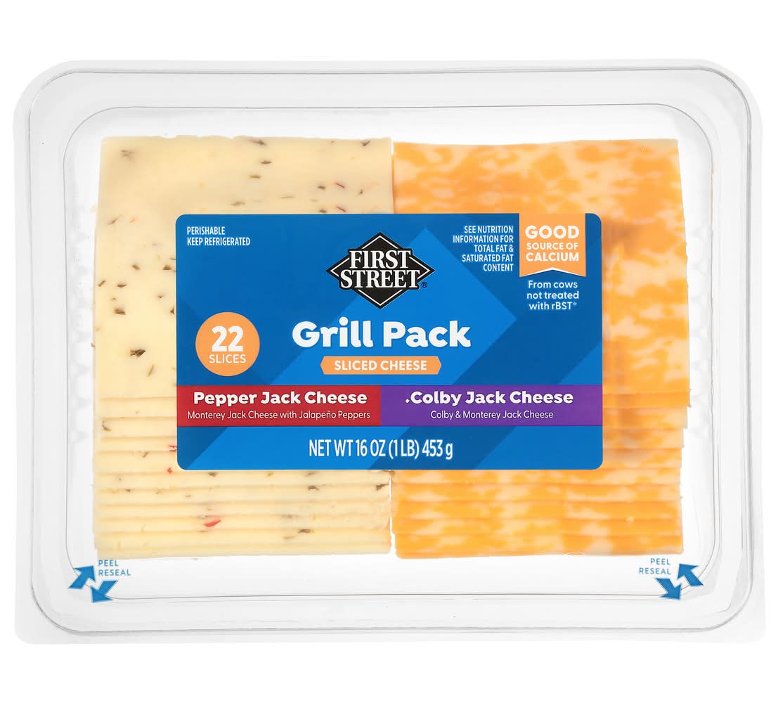 First Street Pepper Jack & Colby Jack Sliced Cheese Grill pack (16 oz, 22 ct)