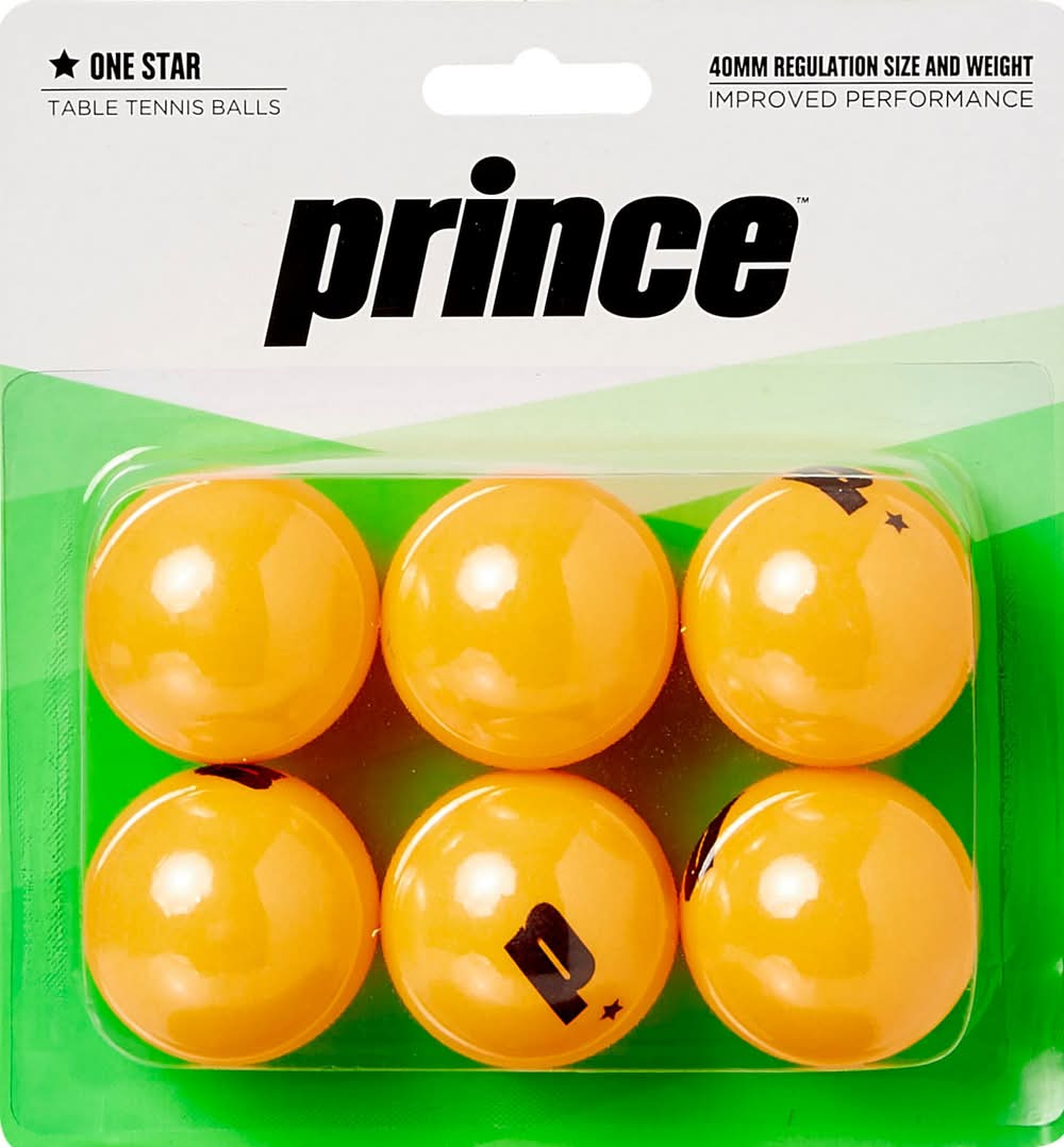 Prince One-Star Table Tennis Balls, 40 mm, Orange (6 ct)