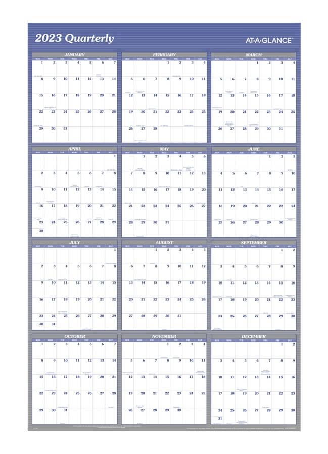 AT-A-GLANCE 2023 Quarterly Vertical Reversible Dry Erasable Wall Planner, Extra Large, Blue