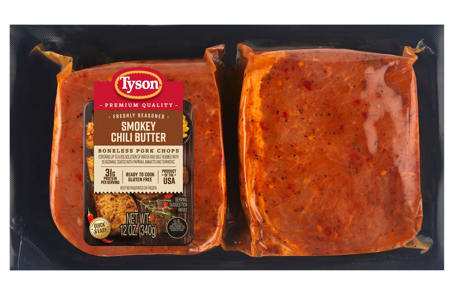 Tyson Freshly Seasoned Boneless Pork Chops, Smokey Chili Butter (12 oz)