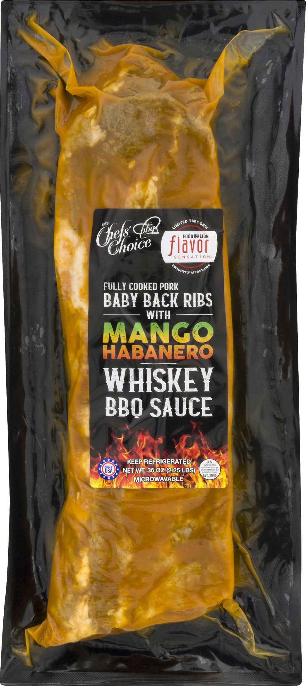 Chef's Choice Habanero Whiskey Bbq Sauce Baby Back Ribs, Mango (36 oz)