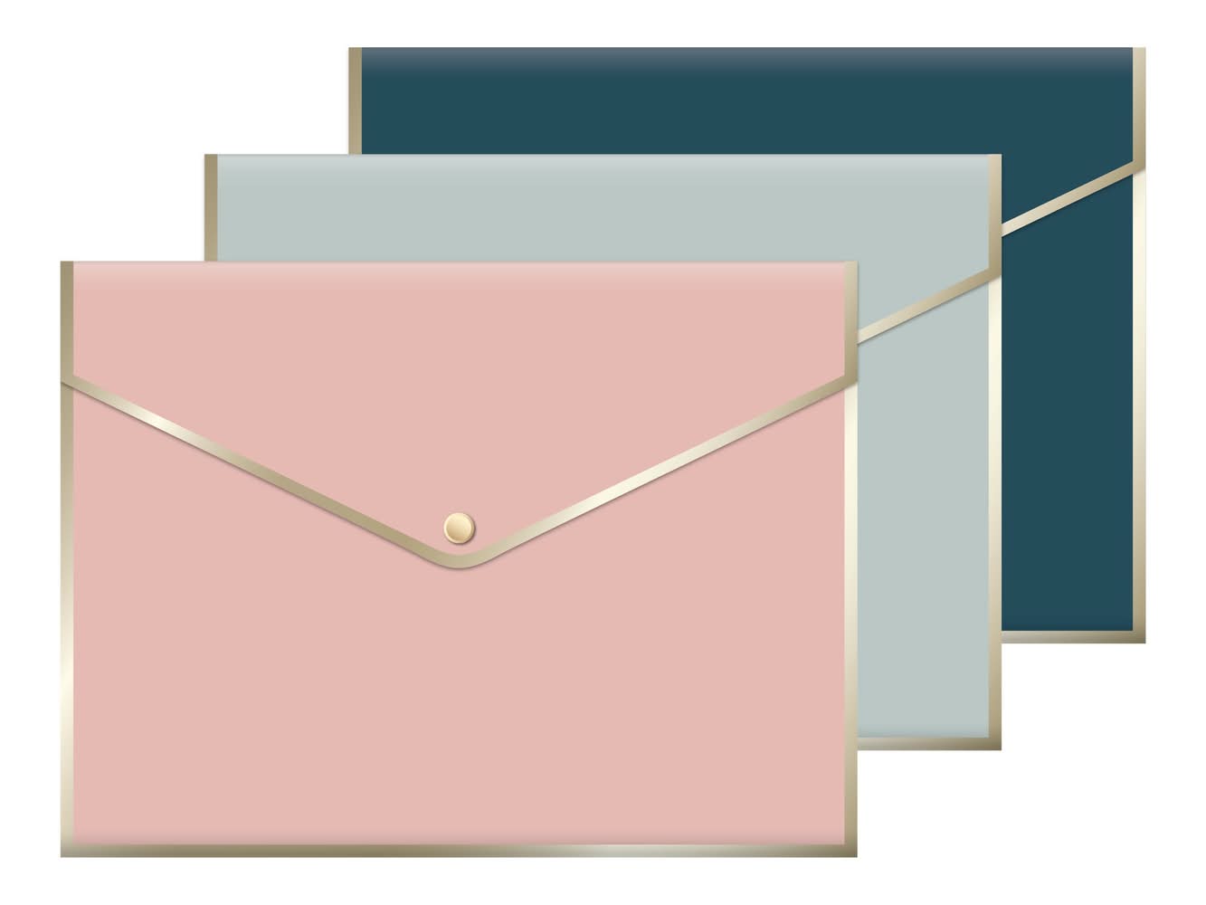 Les Produits U Poly Document Holders With Snap Cover Pastels, Assorted (3 ct)