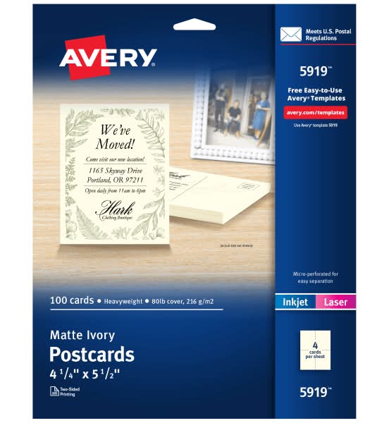 Avery Printable Postcards For Laser & Inkjet Printers, 4.25x5.5 in, Off-White (100 ct)