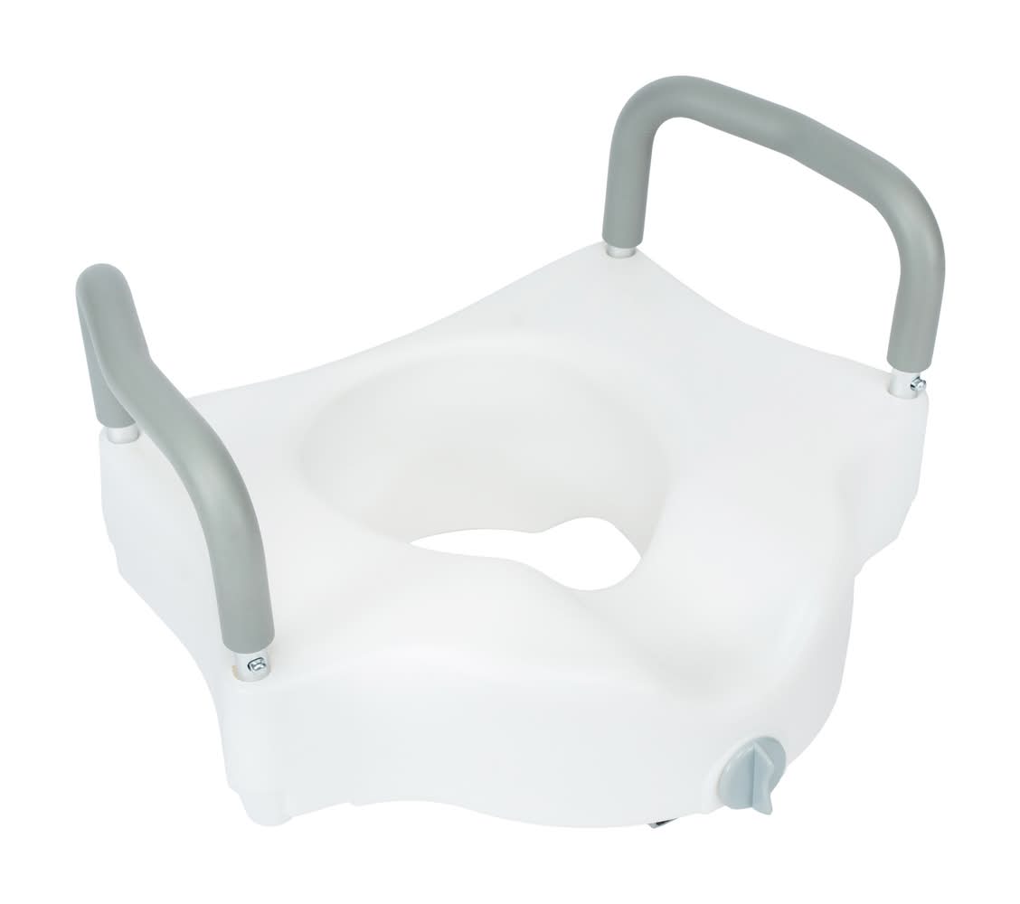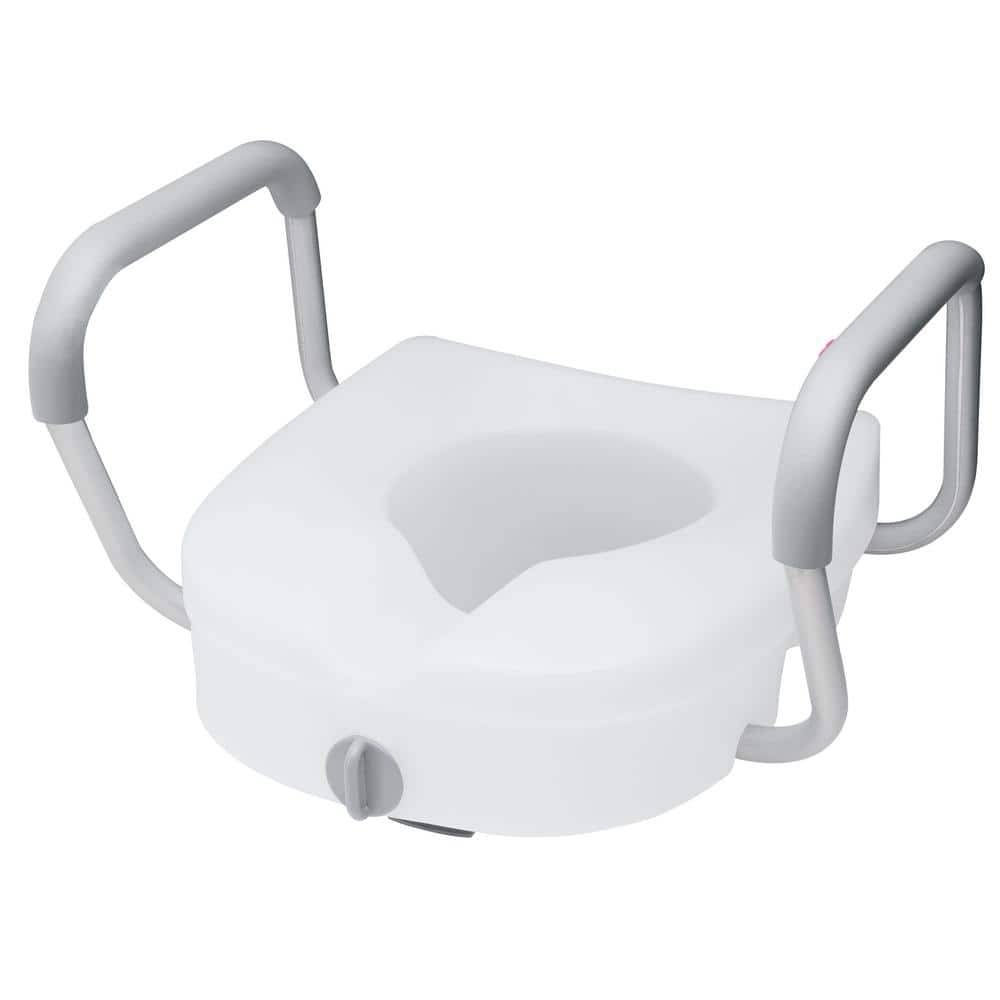 Glacier Bay Round Elevated Toilet Seat With Armrests Lockable, 5 in, White
