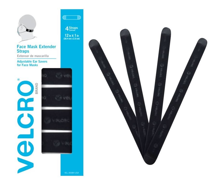 Velcro Face Mask Extender Straps, 12" X 1", Black (4 ct)