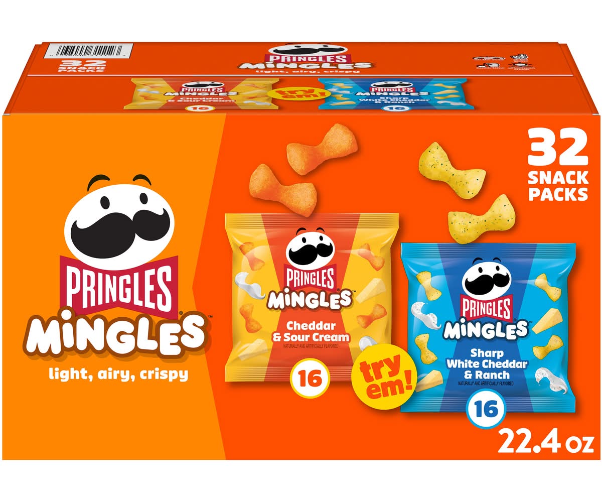 Pringles Mingles Puffed Snacks Variety pack, Cheddar & Sour Cream-Sharp White Cheddar & Ranch (0.7 oz, 32 ct)
