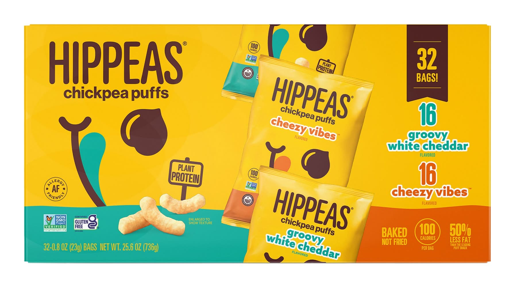 Hippeas Chickpea Puffs Variety pack, Groovy White Cheddar-Cheezy Vibes (0.8 oz, 32 ct)