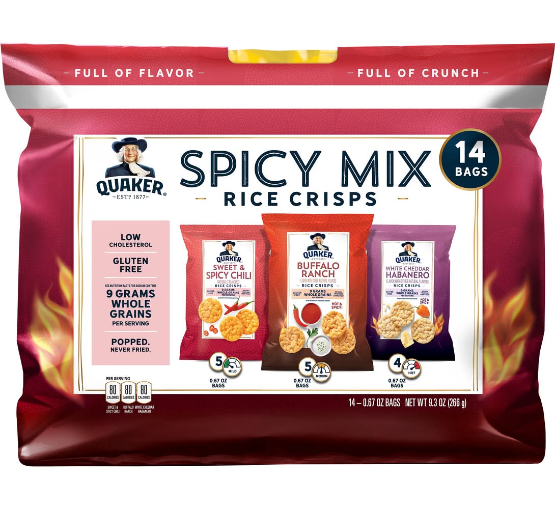 Quaker Spicy Mix Gluten Free Rice Crisps Variety pack, Sweet & Spicy Chili-Buffalo Ranch-White Cheddar Habanero (14 x 0.67 oz)