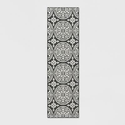 Threshold Washable Runner Medallion Tufted and Hooked Rug, Gray