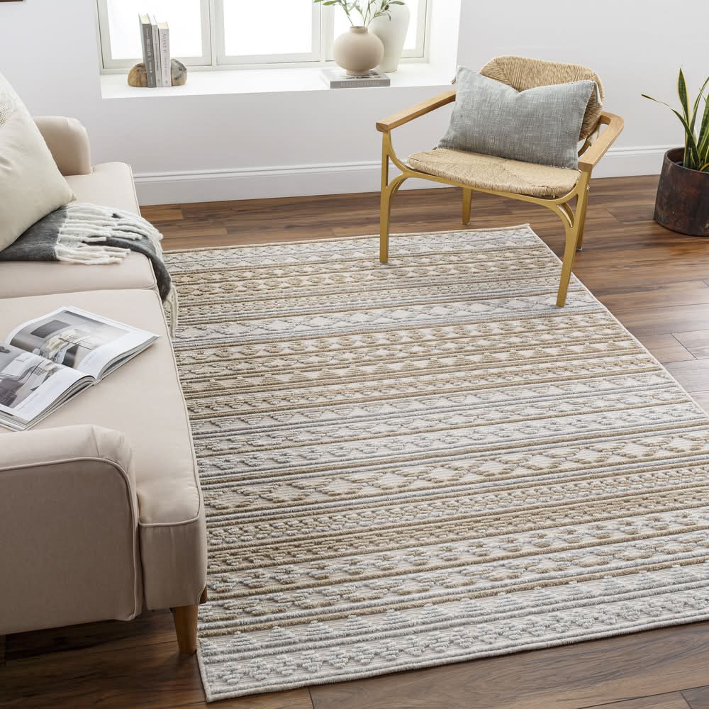Origin 21 Indoor Ikat Machine Washable Area Rug, Natural Tan
