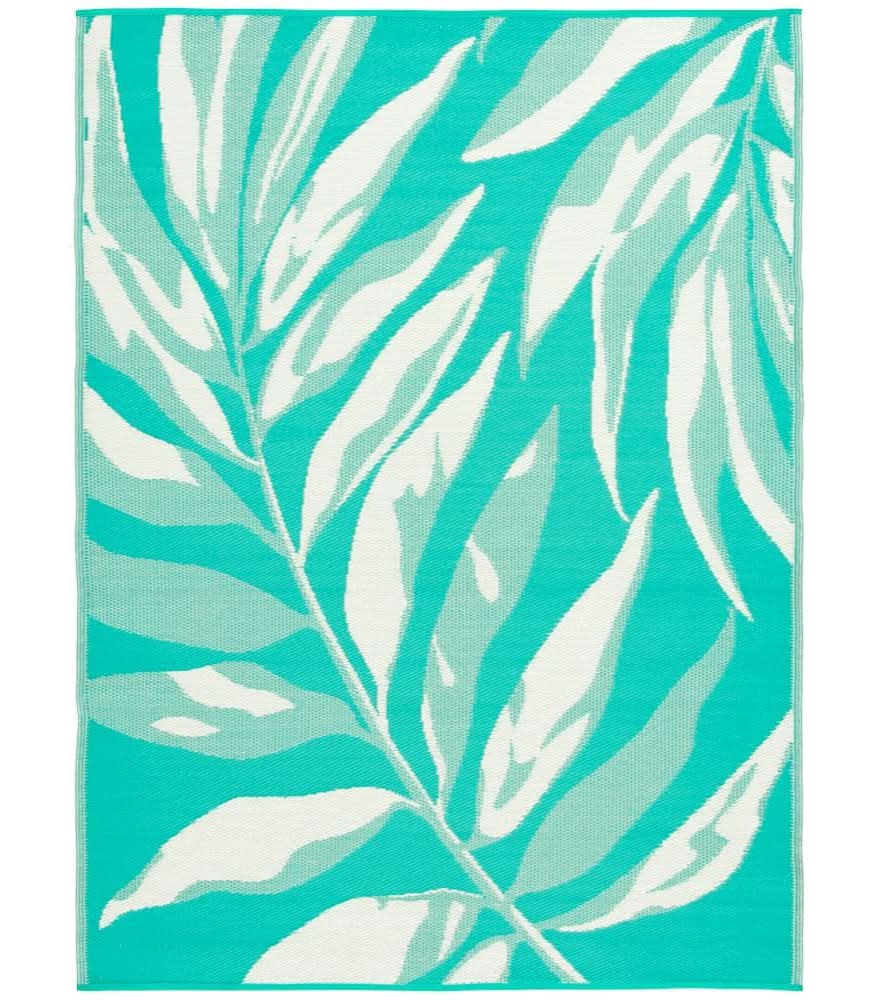 Palm Floral Indoor & Outdoor Area Rug, 6x8 ft, Turquoise
