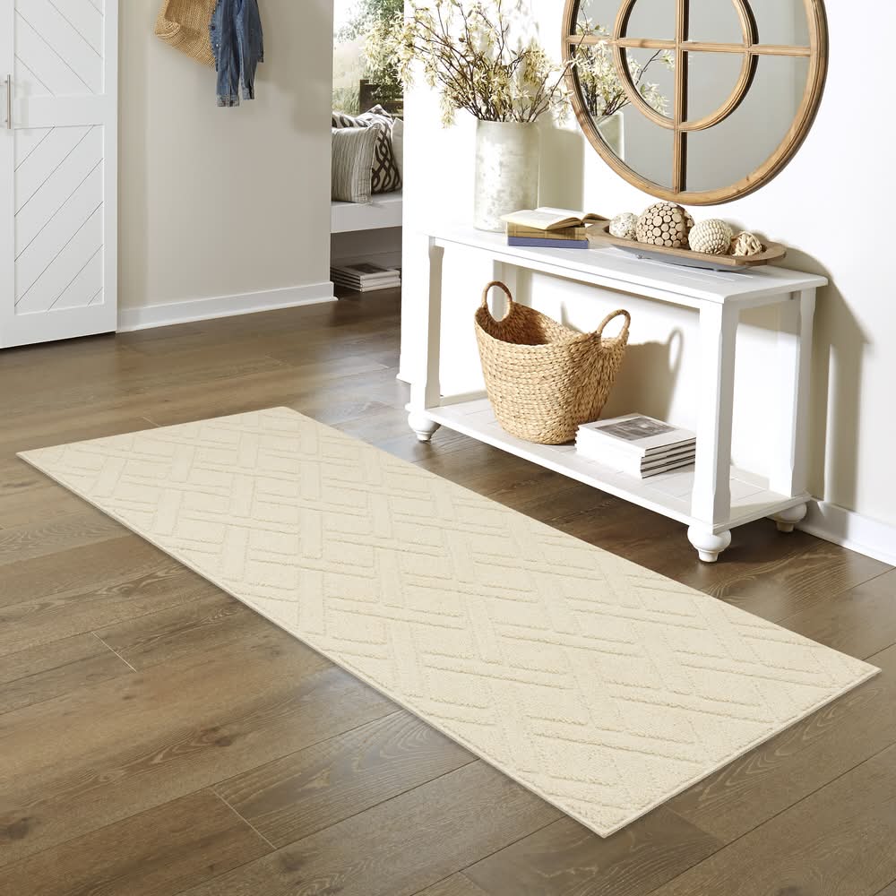 Style Selections Rectangular Indoor Trellis Global Runner Rug, 3x8 ft, Ivory