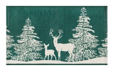 Winter Deer and Fawn Scatter Rug, 20x34 in, Teal-White