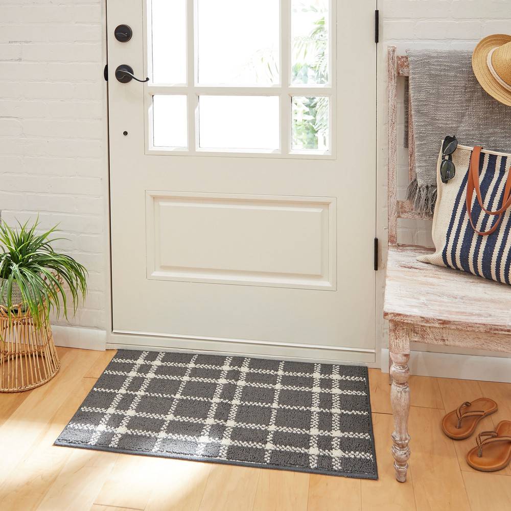 Room Essentials Washable Small Checker Accent Rug, 4x5 ft x 5 in, Charcoal-Ivory