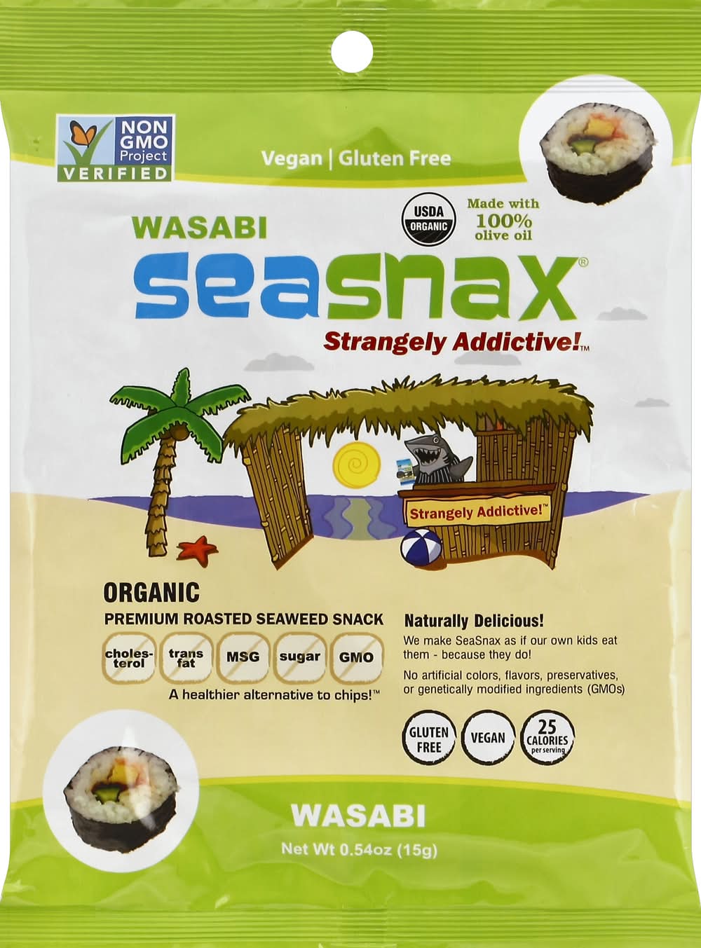 SeaSnax Organic Roasted Seaweed Snack, Wasabi (0.54 oz)