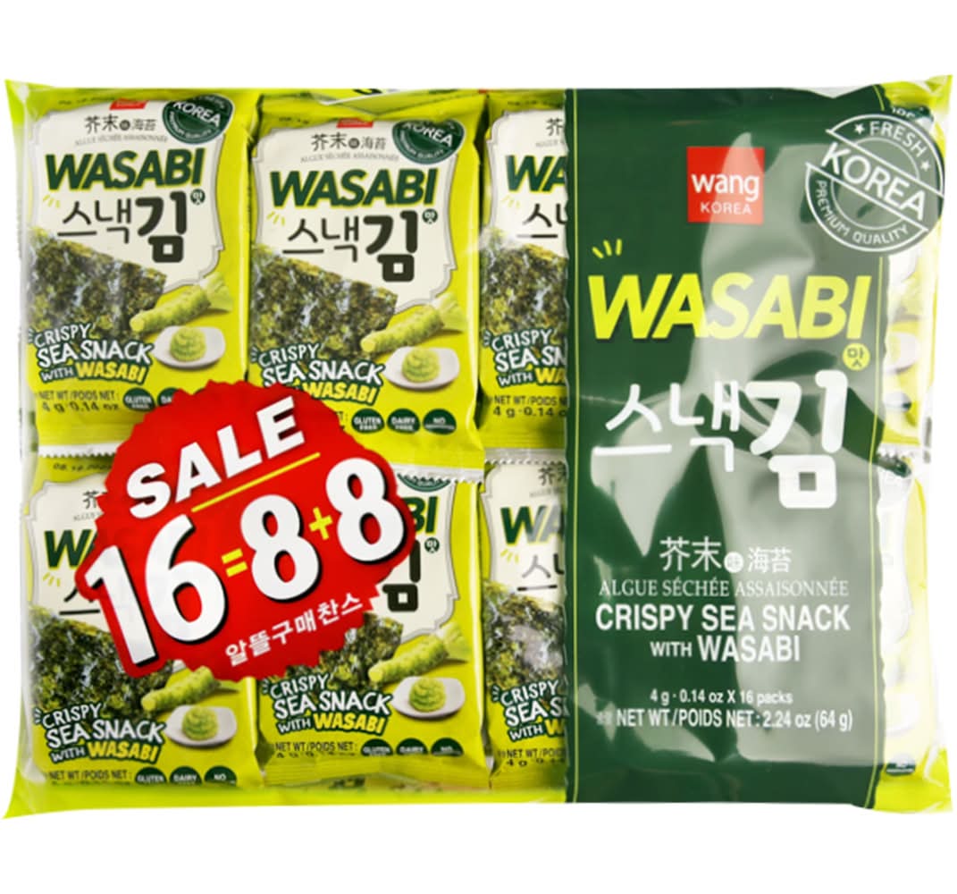 Wang Food Crispy Seaweed Snacks, Wasabi (16 x 0.14 oz)