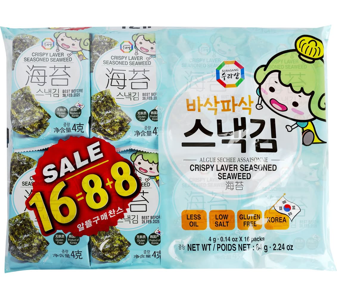 Surasang Crispy Laver Seasoned Seaweed Snacks (16 x 0.14 oz)