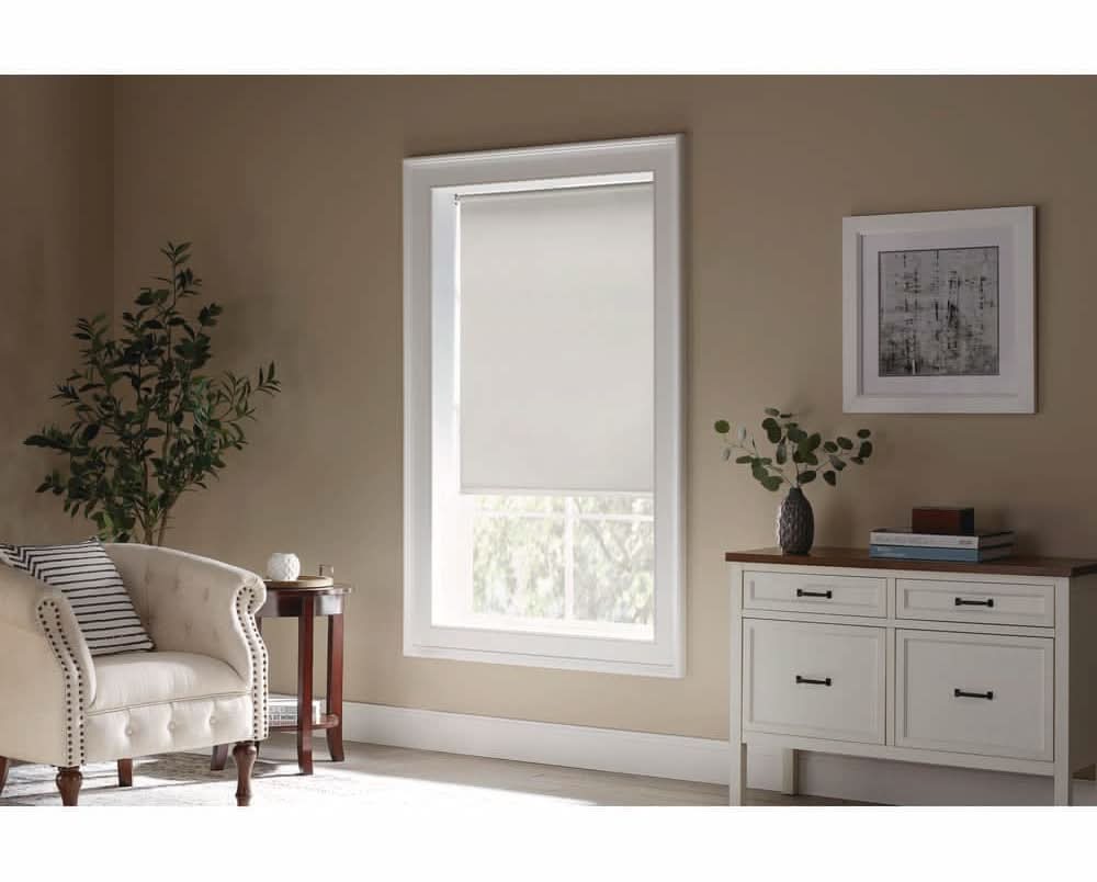 The Home Depot Cordless Room Darkening Vinyl Roller Shade, Cream