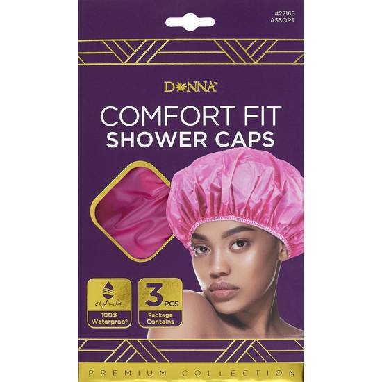 Donna Comfort Fit Shower Caps, Pink (3 ct)