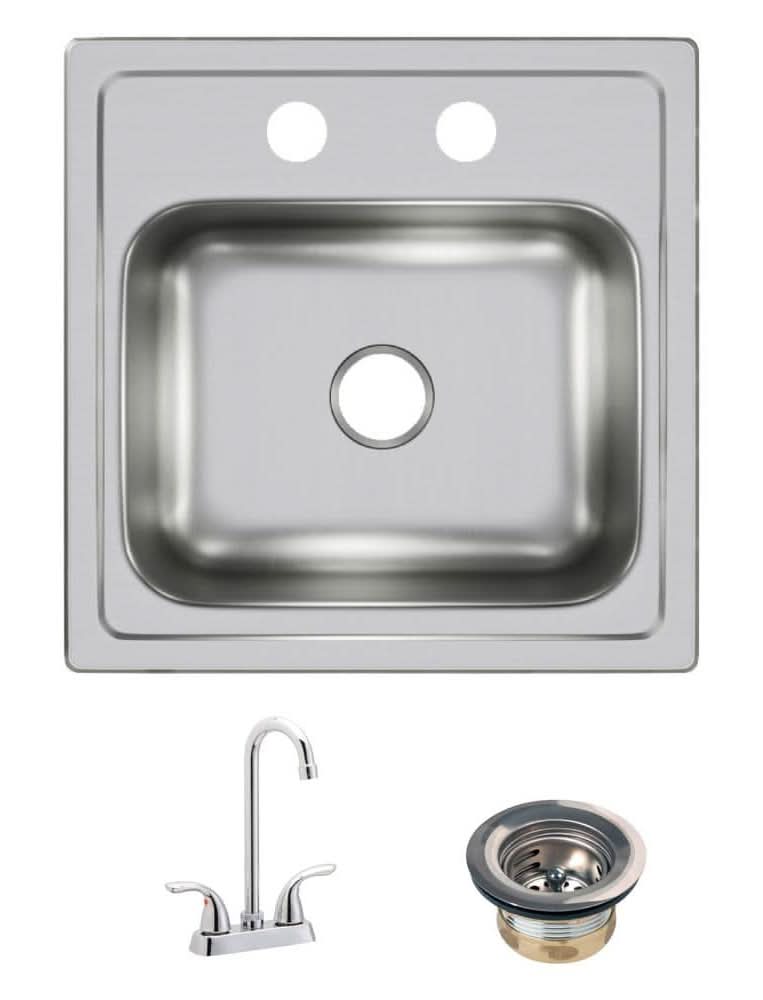 Elkay Drop in Single Bowl 20 Gauge Durable Stainless Steel Kitchen Sink Kit, 15 in, Silver