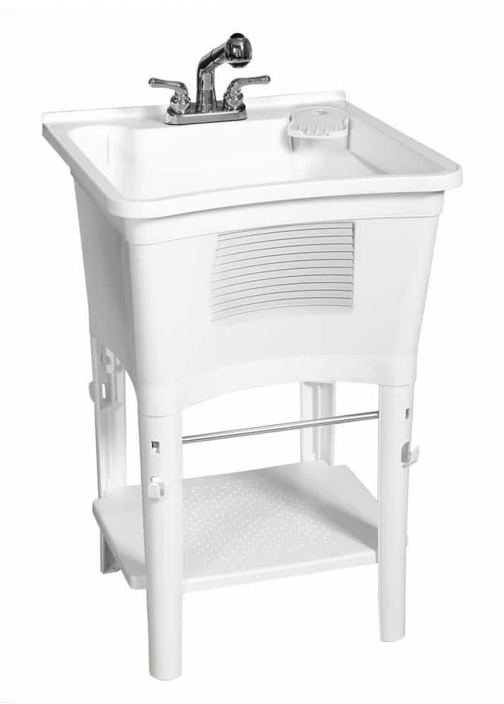 Glacier Bay Utility Sink Work Center With Pull-Out Faucet, 24.1x24.1x36.7 in, White