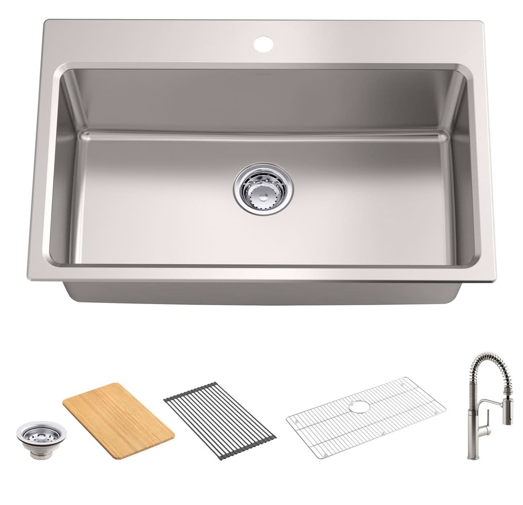 Kohler Provo Undermount Single-Bowl Workstation Kitchen Sink Kit, 33 in , Stainless Steel
