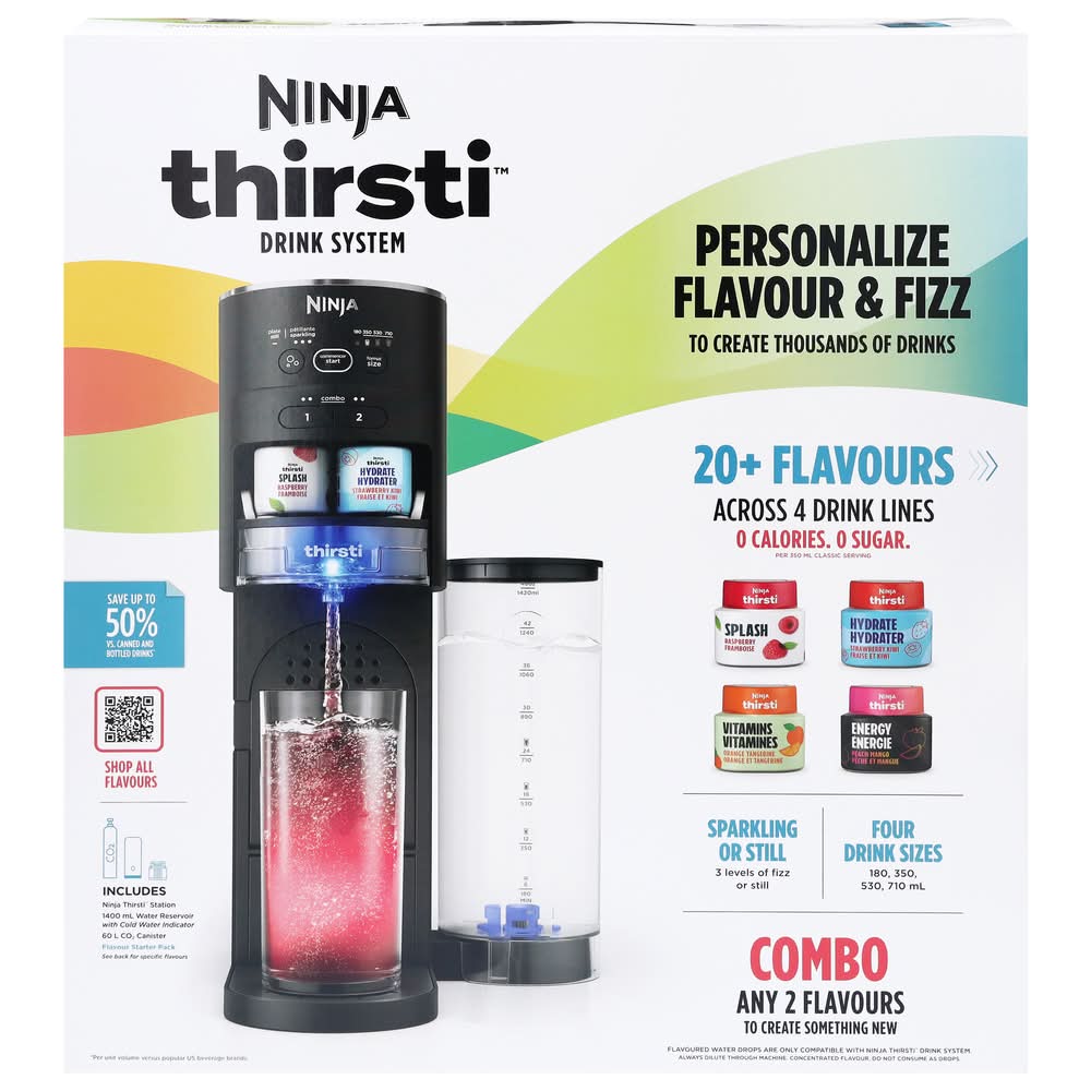Ninja Thirsti Drink System Makes Sparkling & Still Water, Black