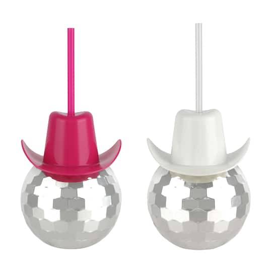 Fab Finds Disco Ball Cup With Cowgirl Hat Lid & Straw, 4.5 In x 6 In , Assorted