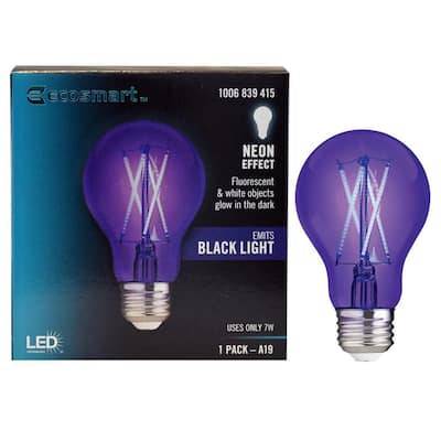 EcoSMART 40-Watt Equivalent A19 Blacklight Ultraviolet Glow in the Dark Led Light Bulb, Black