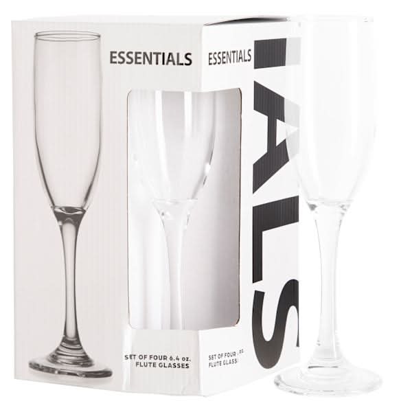 Essentials Champagne Flute Glasses 6 oz, Clear (4 ct)