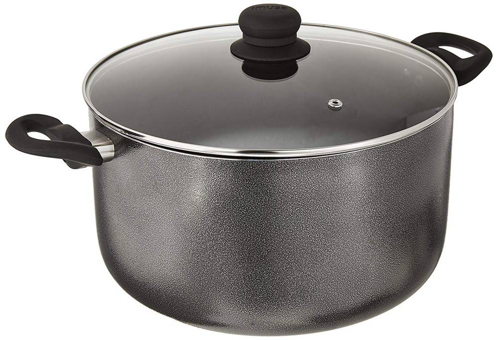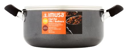 Imusa Aluminum Pot With Glass Lid 6 Qt, Black,Silver
