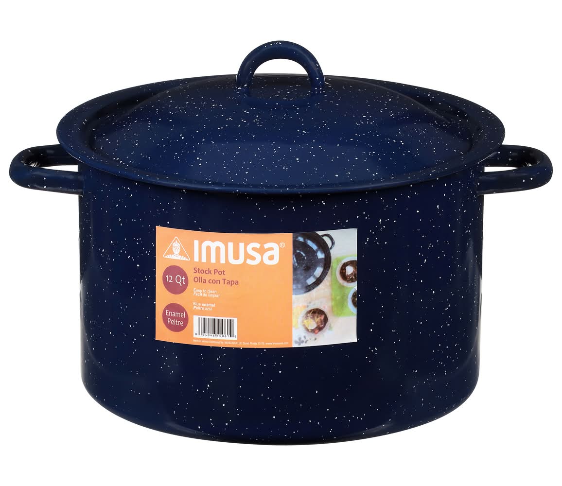 Imusa 6 Qt Blue Enamel Stock Pot With Lid