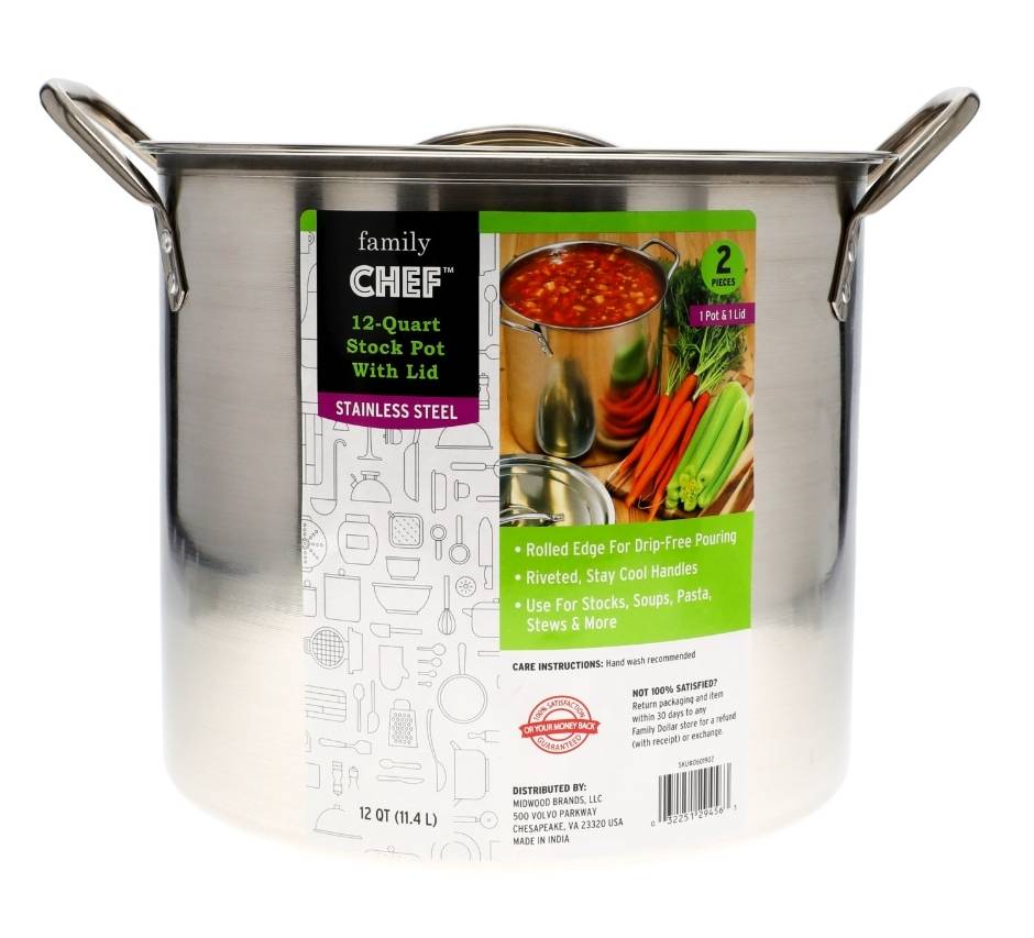 Family Chef Stainless Steel Stock Pot With Lid 12 Qt