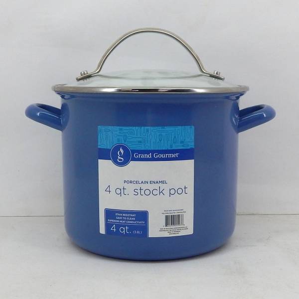 Grand Gourmet 4 Qt Enamel Stock Pot Chambray, Blue