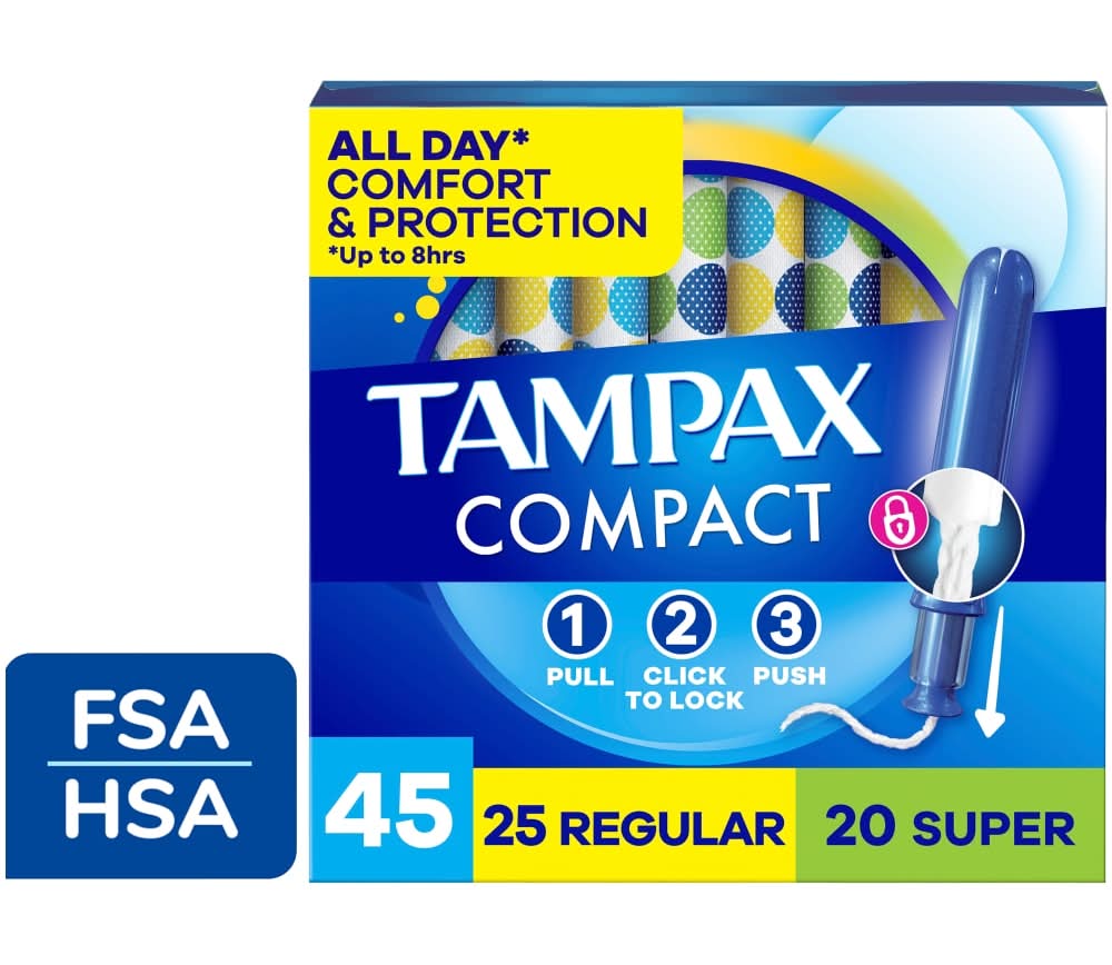 Tampax Compact Regular Absorbency Unscented Tampons With Applicator, Assorted (30 ct)