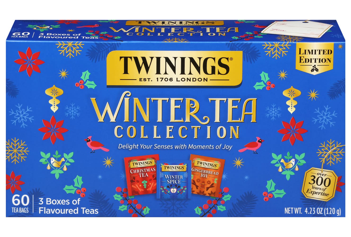 Twinings Winter Tea Collection Christmas Tea, Christmas Tea/Winter Spice/Gingerbread Joy (4.23 oz, 60 ct)