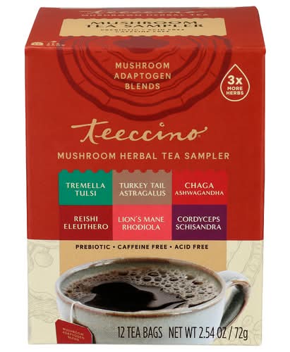 Teeccino Organic Mushroom Herbal Tea Sampler, Assorted (2.54 oz, 12 ct)