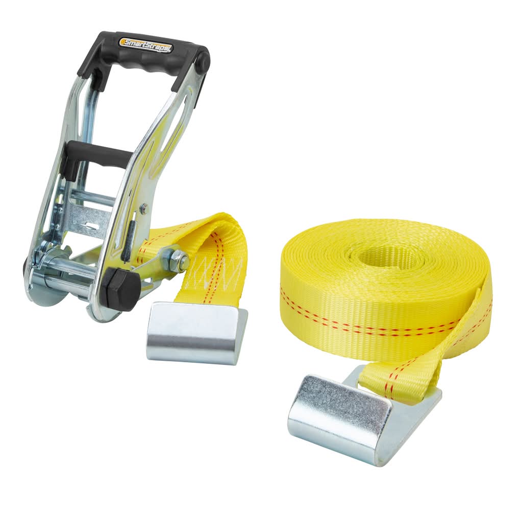 SmartStraps Break Strength Ratchet Strap With Flat Hook, 2in x 27ft, Yellow