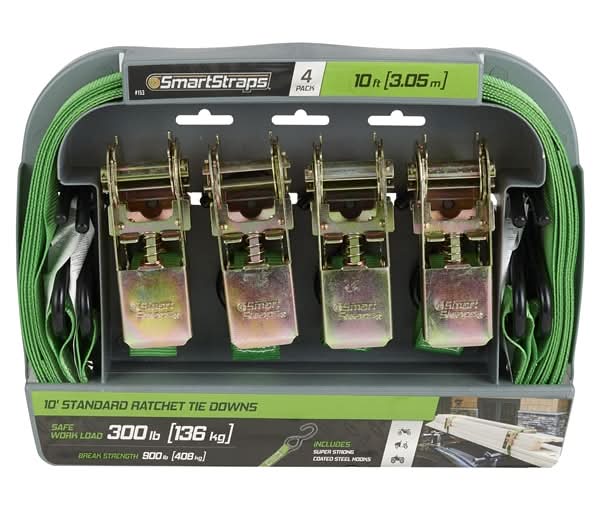 SmartStraps Standard Ratchet Tie Down 300 lb, 10 in, Green (4 ct)