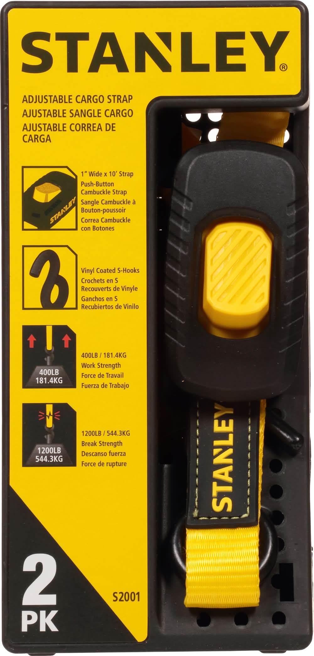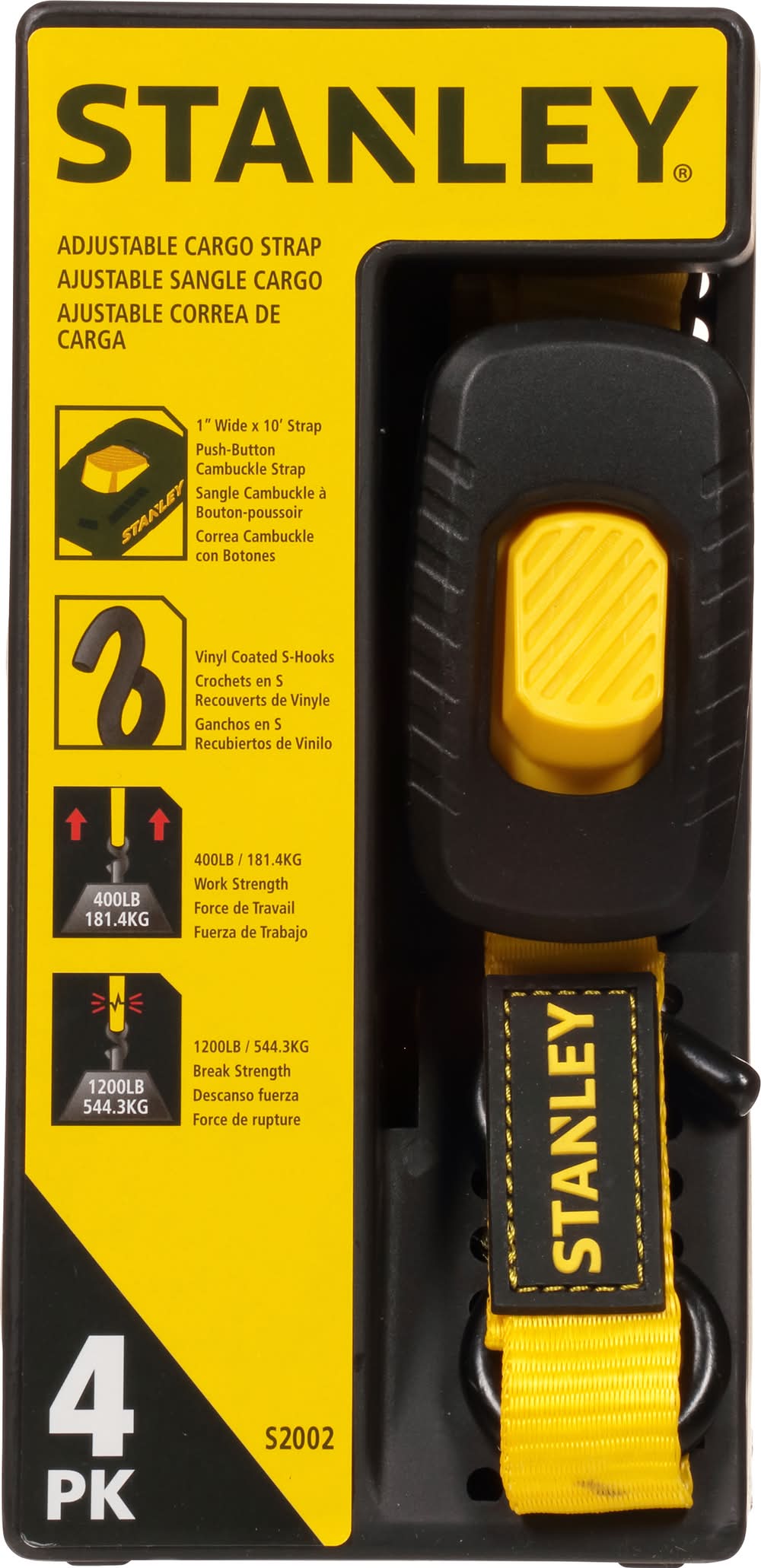 Stanley Adjustable Cargo Strap, Black-Yellow (4 ct)