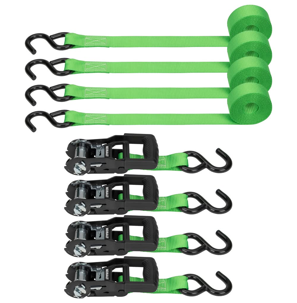 Kobalt Ratcheting Strap Tie Down With S Hook Break Strength 1500 lb, 1 in x 12 ft, Green